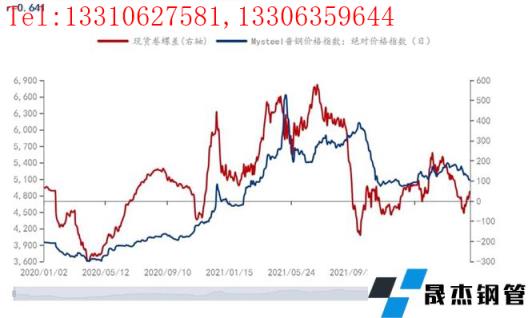 從上述五個階段,盤面卷螺差在鋼價上行中更容易走高,在鋼價下跌中更容易走低(第一階段、第二階段),但也會出現(xiàn)一定的分化。在第三階段,為貫徹實(shí)施碳達(dá)峰、碳中和,無縫厚壁鋼管廠家供應(yīng)減少、供需錯配,此時建筑厚壁無縫鋼管供應(yīng)大幅收縮,雖然鋼價暴漲,但盤面卷螺差高位震蕩。經(jīng)濟(jì)周期上行時,制造業(yè)需求向好,卷板漲勢更好;反之在經(jīng)濟(jì)下行周期,制造業(yè)需求萎縮,卷板更多是跟隨建筑厚壁無縫鋼管趨勢波動。第四階段、第五階段,鋼價暴跌后筑底反彈,盤面卷螺差則繼續(xù)震蕩走勢,但高點(diǎn)降低,反映了在經(jīng)濟(jì)下行周期,制造業(yè)表現(xiàn)低迷,為穩(wěn)增長建筑業(yè)表現(xiàn)會相對好些。