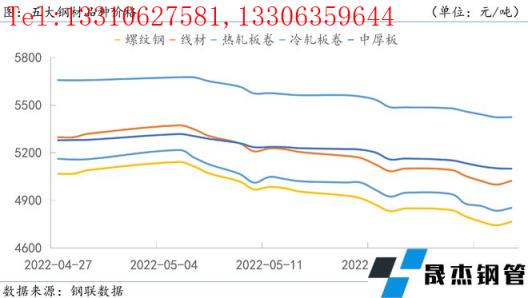 本周,五大厚壁無縫鋼管品種價格均下跌。其中,熱軋板卷價格下降最明顯,周跌幅達(dá)95元/噸。