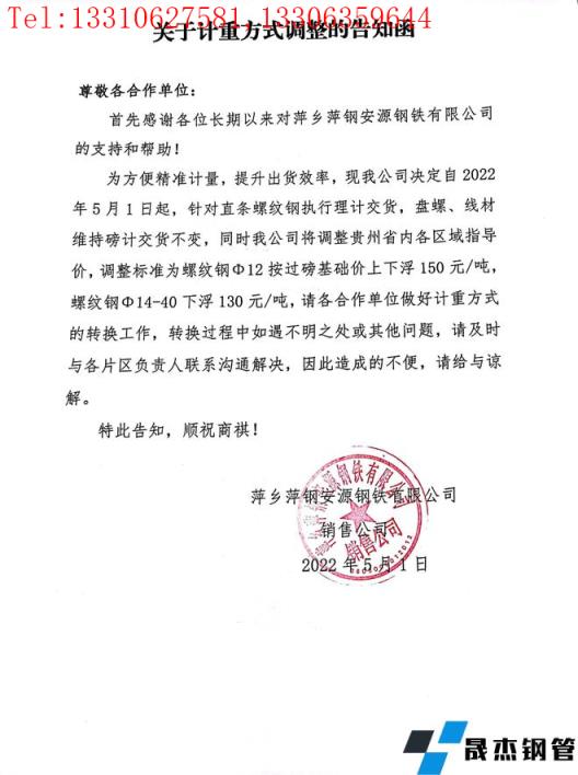免責聲明:本網(wǎng)站(山東聊城晟杰無縫鋼管廠www.aremjf.cn)刊載的“萍鄉(xiāng)萍鋼安源鋼鐵有限公司關(guān)于對貴州區(qū)域計重方式調(diào)整的告知函”等均源于網(wǎng)絡(luò),版權(quán)歸原作者所有,且僅代表原作者觀點,本文所載信息僅供參考。轉(zhuǎn)載僅為學習與交流之目的,如無意中侵犯您的合法權(quán)益,請及時聯(lián)系刪除。本網(wǎng)站刊登此篇文章并不意味著本站贊同其觀點或證實其內(nèi)容的真實性,我們不對其科學性、嚴肅性等作任何形式的保證。如果侵犯了您的版權(quán),請盡快聯(lián)系我們予以撤銷,謝謝合作!