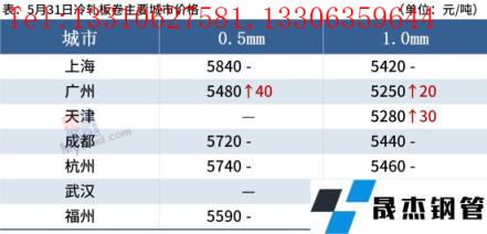冷軋板卷:5月31日,全國24個主要城市1.0mm冷卷均價5434元/噸,較上個交易日上漲6元/噸。由于本月無縫厚壁鋼管廠家結(jié)算多不理想,與市場價格形成倒掛,再加上需求持續(xù)疲軟,現(xiàn)貨市場跟漲動力不足,商家多以穩(wěn)價出貨回籠資金為主,今日整體成交表現(xiàn)一般。據(jù)悉,上海6月1日倉庫取消通行證提貨要求,倉庫有望恢復正常加工提貨,由于臨近解封,上海市場觀望情緒較為濃厚,悲觀情緒有所改善。預計1日國內(nèi)冷軋板卷價格或?qū)⒄鹗庍\行為主。
