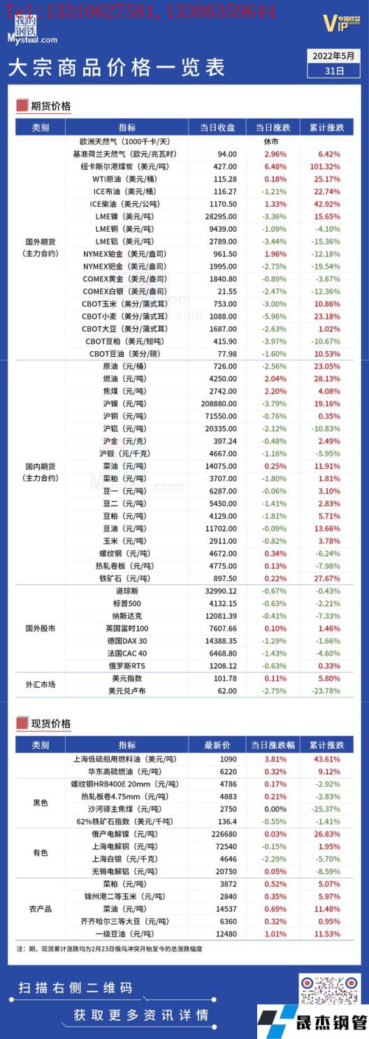 免責(zé)聲明:本網(wǎng)站(山東聊城晟杰無(wú)縫鋼管廠www.aremjf.cn)刊載的“俄烏局勢(shì)丨大宗商品價(jià)格一覽表(5月31日)”等均源于網(wǎng)絡(luò),版權(quán)歸原作者所有,且僅代表原作者觀點(diǎn),本文所載信息僅供參考。轉(zhuǎn)載僅為學(xué)習(xí)與交流之目的,如無(wú)意中侵犯您的合法權(quán)益,請(qǐng)及時(shí)聯(lián)系刪除。本網(wǎng)站刊登此篇文章并不意味著本站贊同其觀點(diǎn)或證實(shí)其內(nèi)容的真實(shí)性,我們不對(duì)其科學(xué)性、嚴(yán)肅性等作任何形式的保證。如果侵犯了您的版權(quán),請(qǐng)盡快聯(lián)系我們予以撤銷(xiāo),謝謝合作!