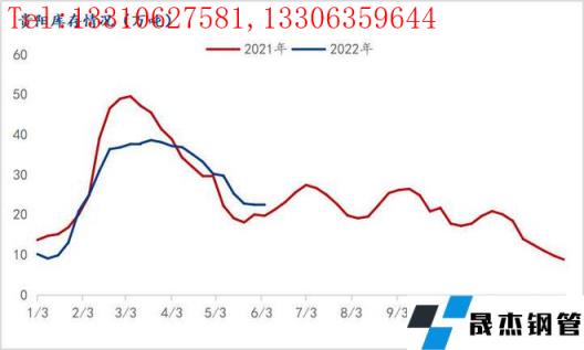 5月中下旬以來(lái),貴州地區(qū)進(jìn)入雨季,強(qiáng)降水天氣頻發(fā),平均降水量較常年同期偏多18.2%,江河來(lái)水量較多年平均偏多25%。雨季來(lái)臨,下游施工受限,運(yùn)輸受阻,貴陽(yáng)主流庫(kù)房開(kāi)單量下滑明顯,5月份貴陽(yáng)市場(chǎng)主流庫(kù)房日均開(kāi)單量6680噸,較4月份日均開(kāi)單量減少967噸,降幅達(dá)12.65%,疊加高考停工影響,今日貴陽(yáng)主流庫(kù)房開(kāi)單量?jī)H4500噸。較2021年5月份日均開(kāi)單量減少4546噸,降幅達(dá)40.49%,僅達(dá)去年六成。雨季需求受限,貴陽(yáng)市場(chǎng)去庫(kù)速度受到影響,截至6月5日,貴陽(yáng)主流庫(kù)房建筑厚壁無(wú)縫鋼管庫(kù)存22.6萬(wàn)噸,較上周減少0.37萬(wàn)噸,降幅1.61%,較去年同期高出2.86萬(wàn)噸,增幅達(dá)14.48%。綜合來(lái)看,雨季來(lái)臨,貴陽(yáng)市場(chǎng)建筑厚壁無(wú)縫鋼管需求明顯下滑,去庫(kù)速度放緩。