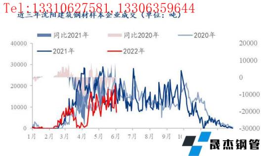 原因1:節(jié)前備貨發(fā)力過猛,提前消費(fèi)節(jié)后需求。受節(jié)前價(jià)格趨強(qiáng)影響,下游工程節(jié)前備貨需求提升后沈陽建筑厚壁無縫鋼管市場(chǎng)成交大幅放量,統(tǒng)計(jì)的節(jié)前最后一個(gè)工作日累計(jì)成交2萬噸、較2021年同比較少0.34萬噸、較2020年同比增加0.55萬噸,但縱向比對(duì)來看,受疫情防控及房地產(chǎn)政策調(diào)控影響波及,2022年日均成交水平較2021年同比減少0.45萬噸、較2020年同比減少0.15萬噸,以此評(píng)估來看,2022年端午節(jié)前沈陽成交放量過大、在一定程度上提前消費(fèi)了節(jié)后需求。