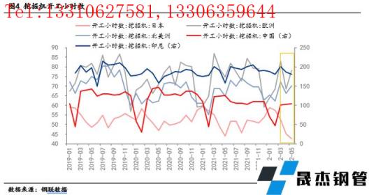 4月挖掘機出口銷量8445臺,同比增長64%,增幅較去年收窄,目前出口量占到挖掘機總銷量的40.95%,較去年同期增加22.03個百分點,出口對挖掘機銷量貢獻(xiàn)明顯增加。但分析來看,未來挖掘機出口銷量增長空間收窄,主要原因包括以下幾個方面:1、中國作為制造業(yè)大國,在去年疫情修復(fù)后為全球工業(yè)產(chǎn)品供應(yīng)發(fā)揮了重要作用,目前全球制造業(yè)供應(yīng)鏈逐漸恢復(fù)正常,對中國進(jìn)口需求下降。2、海外市場需求轉(zhuǎn)弱,從小松挖掘機公布的各國挖掘機開工小時數(shù)來看,5月日本、印尼開工小時數(shù)均呈現(xiàn)環(huán)比下滑趨勢,北半球開始進(jìn)入施工淡季,對挖掘機需求減弱。