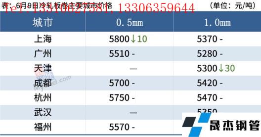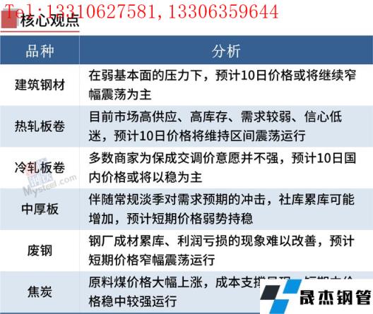 冷軋板卷:6月9日,全國24個主要城市1.0mm冷卷均價5435元/噸,較上個交易日下跌5元/噸。市場需求持續(xù)疲軟,下游企業(yè)按需采購,據(jù)悉,目前部分商家低價成交尚可,高價成交艱難,多以出貨回籠資金為主。即便黑色系期貨盤面震蕩偏強(qiáng)運行,但現(xiàn)貨市場跟漲動力不足,多數(shù)商家為保成交調(diào)價意愿并不強(qiáng),且整體市場成交處于中等偏下水平。庫存方面,本周冷軋無縫厚壁鋼管廠家?guī)齑?0.43萬噸,周環(huán)比減少0.32萬噸,社會庫存136.09萬噸,周環(huán)比減少0.02萬噸,周消費量84.21萬噸,環(huán)比增加0.51萬噸。綜合來看,預(yù)計10日國內(nèi)冷軋板卷價格或?qū)⒁苑€(wěn)為主。