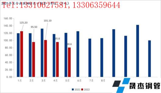 5月中國(guó)進(jìn)口厚壁無(wú)縫鋼管80.6萬(wàn)噸,較上月減少15萬(wàn)噸,同比下降33.4%;1-5月累計(jì)進(jìn)口厚壁無(wú)縫鋼管498.0萬(wàn)噸,同比下降18.3%。