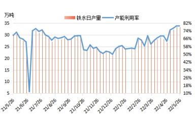 圖2唐山高爐開(kāi)工率與鐵水產(chǎn)量走勢(shì)圖