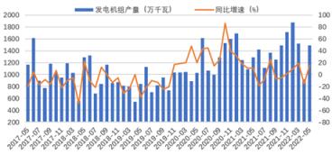 圖4 2017-2022年分月度發(fā)電機組產量及增長情況