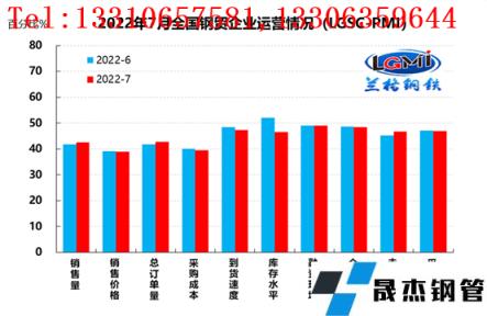 云商平臺(tái)統(tǒng)計(jì)發(fā)布的2022年7月份厚壁無(wú)縫鋼管流通業(yè)PMI總指數(shù)為46.7%,比上月回升0.6個(gè)百分點(diǎn),在收縮區(qū)間內(nèi)低位回升。從分類指數(shù)看,構(gòu)成厚壁無(wú)縫鋼管流通業(yè)