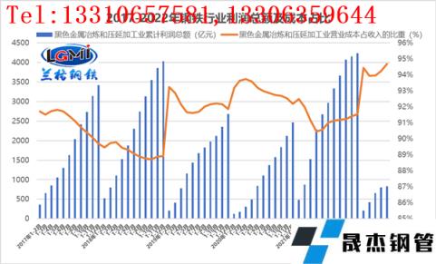 圖4 2017-2022年厚壁無縫鋼管行業(yè)利潤總額及成本占比